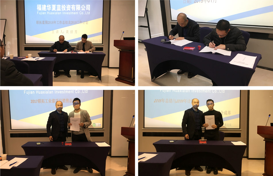 各业务部、生产中心、研发中心负责人分别签约指标责任状、生产端责任状,研发端责任状,确认2019年的目标与责任。