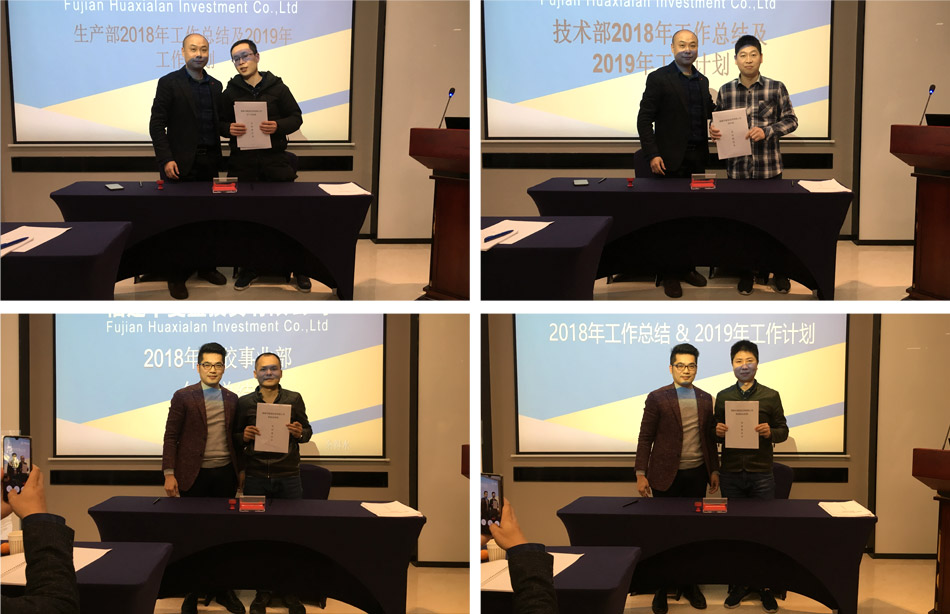人事行政部、财务部、研发中心、生产中心以及各销售业务部部门负责人,向与会人员汇报了年度工作。依次进行了年度工作回顾、工作完成情况、及部门管理情况,并对2019年年度工作计划进行了陈述。