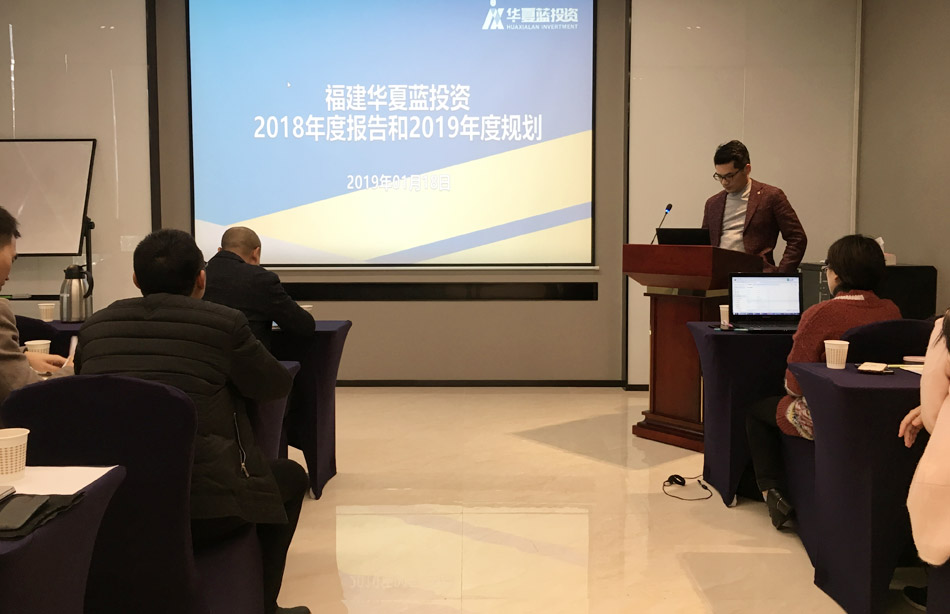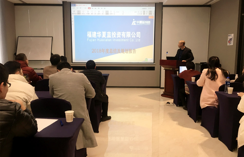 2019年1月18日,福建华夏蓝投资有限公司2018年度年终会议在福州智选假日酒店隆重召开。在华夏蓝投资总经理陈国栋的带领下,五十余位工作人员齐聚一堂,总结2018年成就,展望2019,开启新征程。