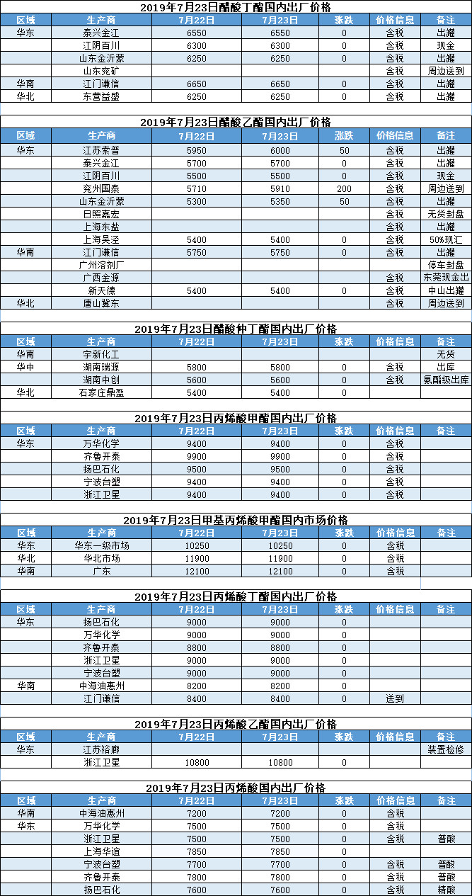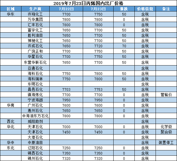 【报价】2019年7月23日国内化工原料报价及趋势