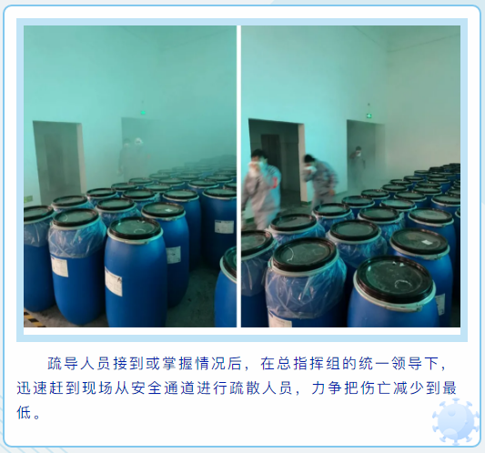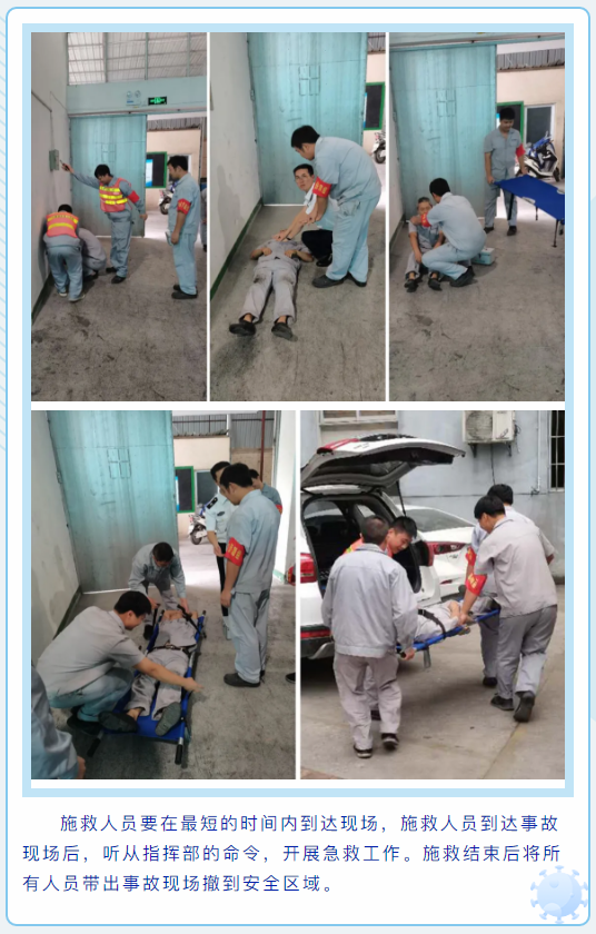 15时30分,事故演练现场总指挥雷赵飞接到电话“生产车间有人触电、昏迷,接到汇报总指挥立刻对现场安全事故和紧急情况评估,随即启动突发事件应急预案。